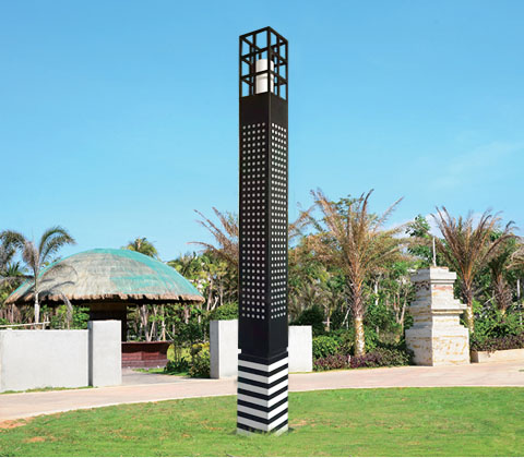 * 燈柱上裝采用方管拼接而成,中間裝圓柱形亞克力透光罩,內裝節能光源;